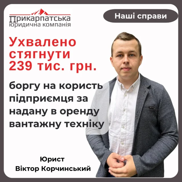 Ухвалено стягнути 239 тис. грн. боргуНаш Довіритель на декілька місяців передав в оренду приватному підприємству власні вантажні автомобілі